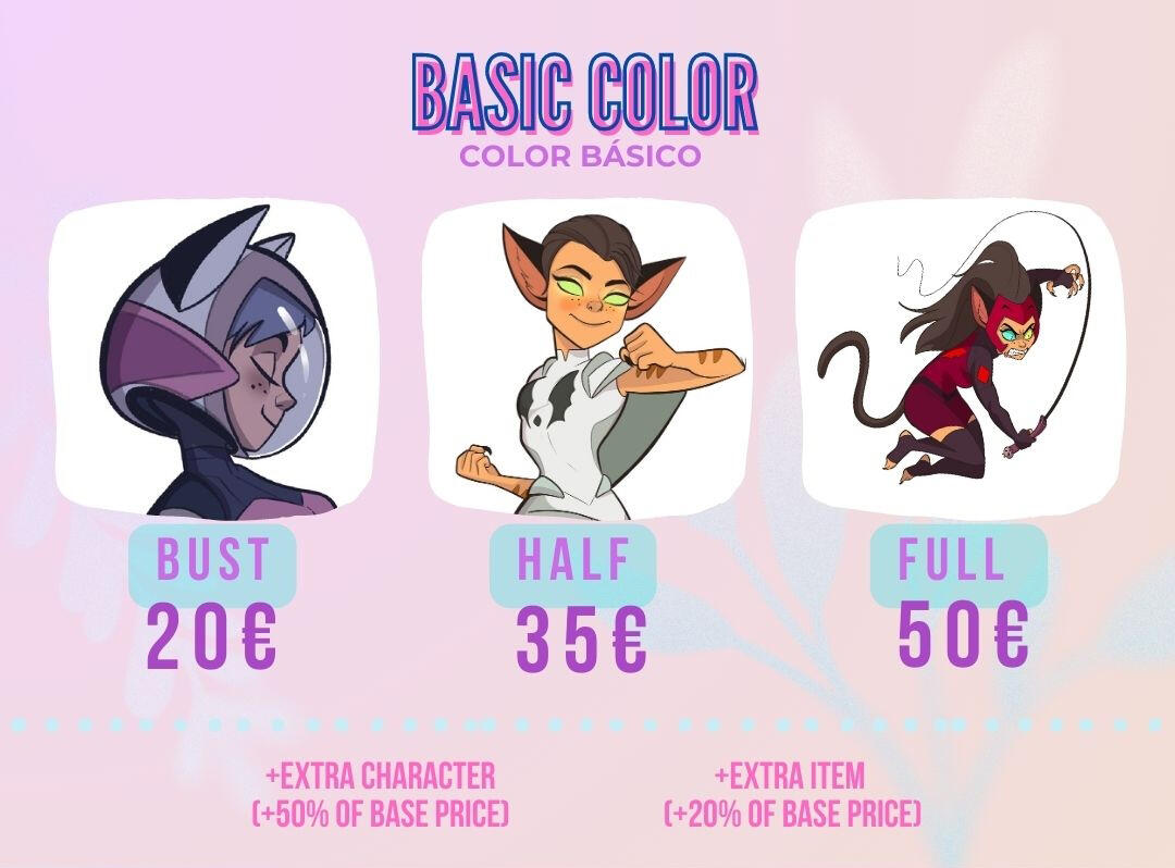 Simple backgrounds are included on the price (flat color or gradient) Complex backgrounds will have an extra based on the complexity. If you need anything not specified in the price sheets, feel free to ask.